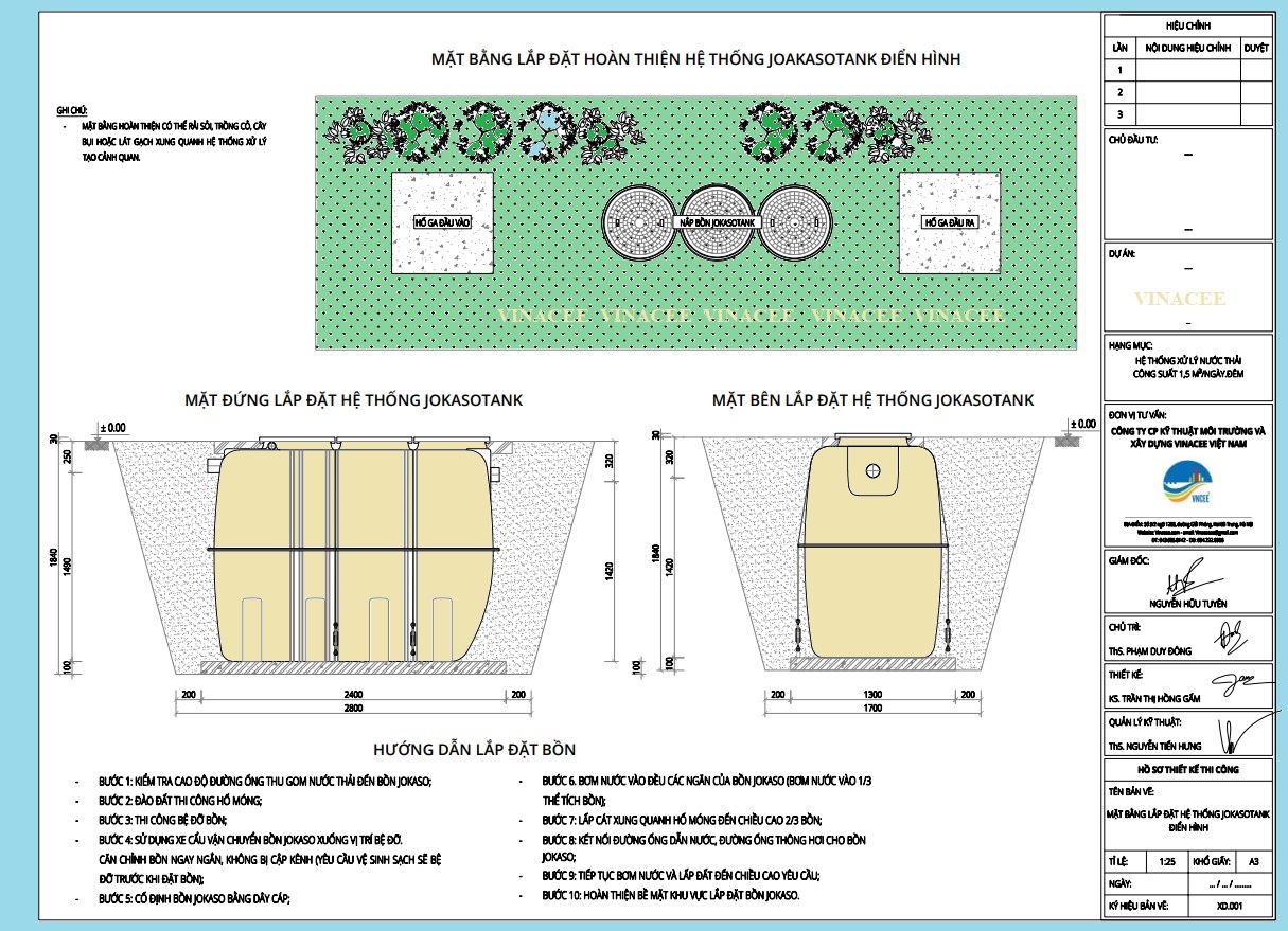 Mặt bằng bố trí hệ thống jokasou tank 2m3/ngđ